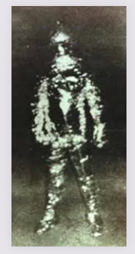As he was driving down a gravel road, he saw a human-shaped creature standing in the middle of it. The creature walked towards him, and Greenhaw took four photos. He said “I was scared stiff.” The creature was covered in a material like tin foil and had an antenna on top of its head. Greenhaw said, “It moved stiffly, like a robot, and didn’t make any sounds.”
